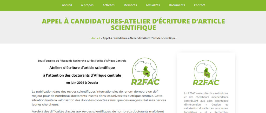 Lire les conditions de candidatures https://r2fac.org/2026/02/12/appel-a-candidatures-atelier-decriture-darticle-scientifique/